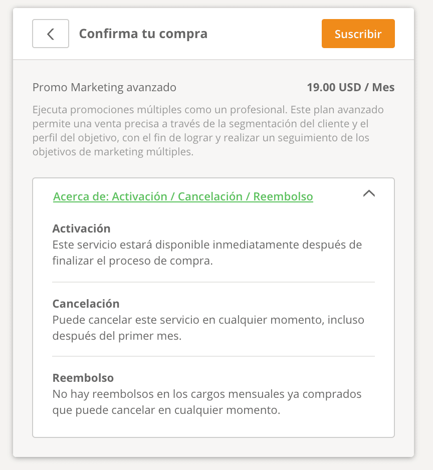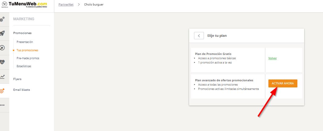 Para activar la suscripción del motor avanzado de promos solo debe ir a Promociones/Tus promociones/Agregar promocion
